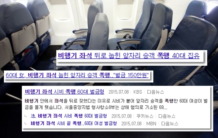 이는 특히 이코노미 좌석의 평균 공간이 줄어들면서 발생되는 문제로 해마다 항공사들은 더 많은 승객들을 태우기 위해 이코노미의 좌석을 줄이면서 현재는 약 31~33인치에 불과할 정도로 좁은 게 현실입니다. 그렇다 보니 좌석 등받이를 뒤로 젖히게 될 경우 옆좌석 승객이 통과하지 못하거나 뒷좌석 승객 무릎에 좌석이 닿으면서 시비가 발생되는 일이 빈번하게 발생이 되는 겁니다. 물론 이러한 문제는 항공사의 탓이기는 하지만 사실 항공사만을 탓하기에는 더 많은 이윤을 남겨야 하는 항공사의 입장을 고려할 때 항공사만을 탓하기는 어렵다고 할 수 있습니다.