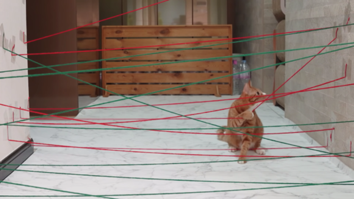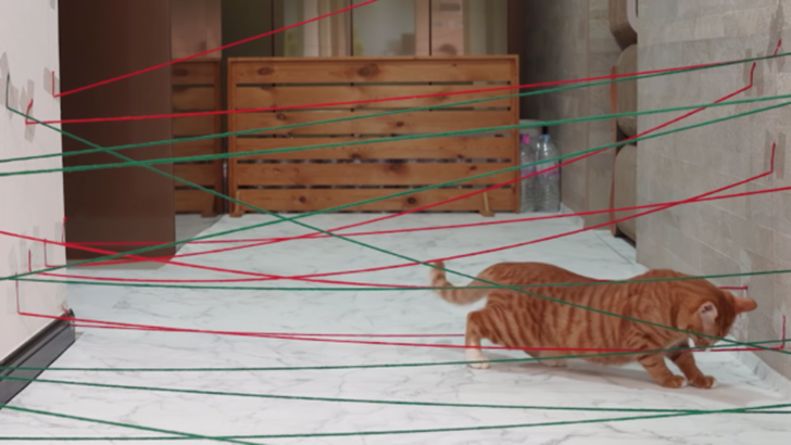 최근 인터넷에서 화제가 되고 있는 영상 중에 이러한 테스를 진행한 네티즌이 있어서 화제가 되고 있다고 합니다. 네티즌은 어느 날 벽에 실을 이용해 마치 레이저 보안 장치의 그것과 비슷하게 설치를 했다고 합니다.