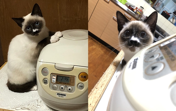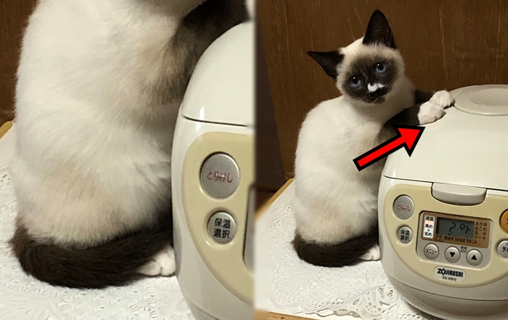 의외에 장소에서 발견된 고양이는 바로 밥솥에 손을 올리고 있었다고 합니다. 보온 기능이 있던 밥솥이 따뜻하다는 사실을 알았던 고양이는 밥솥에 손을 올리며 마치 얼어붙은 손을 녹이기라도 하듯 그렇게 딱 붙어 있었다고 합니다.