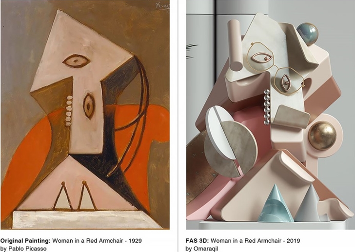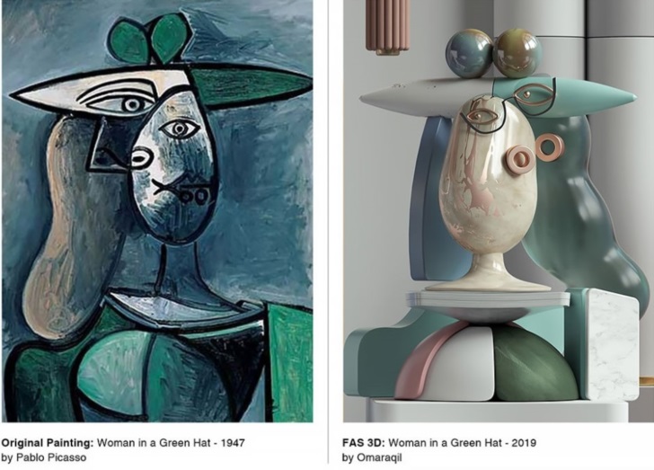 그런데 이러한 피카소의 그림을 3D 조각으로 재해석해 만든 아티스가 최근 화제가 되고 있습니다. 파키스칸 출신의 아티스트 '오마르 아퀼(Omar Aqil)'이 바로 그 주인공입니다. 오마르는 2019년 파리 패션위크의 한 전시회에 초대되어 이 작품들을 선보였다고 하는데요. 당시 많은 사람들은 피카소의 그림을 3D로 재해석한 그의 조각품들을 보고 상당히 놀라움을 보였다고 합니다.