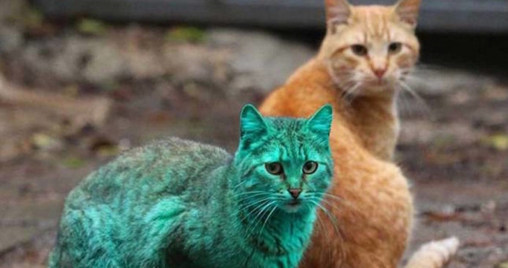 불가리아의 한 마을에서 발견된 온몸이 초록색으로 물든 길고양이는 머리부터 발끝까지 온몸이 초록색으로 물들어 있어 여기까지만 보면 누군가가 고의적으로 초록색으로 칠했을 가능성을 제기하기 쉽습니다. 즉, 동물학대를 의심하게 되죠.