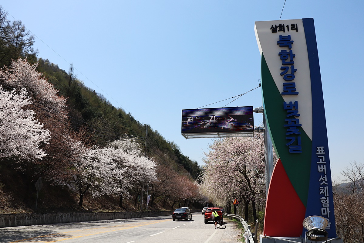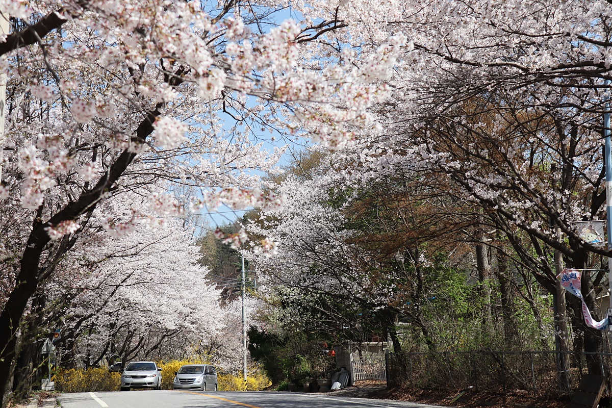 경춘국도 대성리를 지나 신청평 대교를 건너면 북한강을 따라 약 4.5km 가량의 벚꽃 드라이브 길을 만날 수 있습니다. 지방도 391번을 따라 매년 아름다운 벚꽃이 피는 이 곳은 "청평면 삼회리 북한강로 벚꽃 길"로 불리며 30년 이상된 벚꽃나무들이 장관을 이루는 곳이죠. 서울에서 약 1시간 정도 거리에 위치하고 있는 곳으로 차에서 내리지 않고도 벚꽃을 감상할 수 있다는 점에서 특히 드라이브에 최적화된 곳이라고 할 수 있습니다.