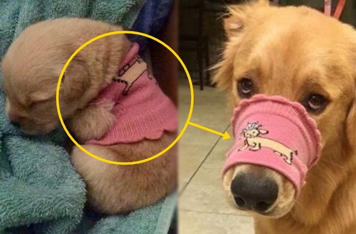 바로 몸에는 입을수 없게 된 핑크색 티셔츠를 입에 대신 끼워주게 되었다고 합니다. 그러자 레트리버는 너무나 행복한 표정으로 집안을 뛰어다녔다고 하는데요. 네티즌은 레트리버가 어린 시절 입었던 핑크색 티셔츠를 너무 좋아해 버릴 수 없었다는 말을 남겼다고 합니다.