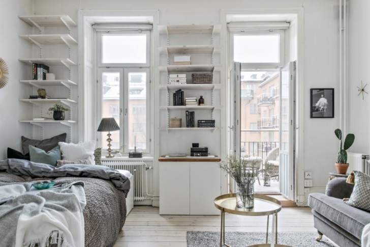 오늘 소개해드릴 북유럽 스칸디나비안 스타일의 인테리어는 약 11평(35제곱미터) 정도의 소형아파트로 스웨덴 스톡홀름 외곽에 위치한 원룸 형식의 소형 아파트입니다. 이 아파트는 별도의 침실 공간 등이 분리되어 있지 않은 거실과 침실이 함께 있는 원룸형 아파트이기는 하지만 운치 있는 발코니와 함께 4~6인용의 다이닝룸을 별도로 갖추고 있어 소형 아파트 답지 않게 공간적인 유연성을 갖추고 있다고 합니다.