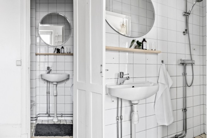 이 아파트가 약 11평임에도 불구하고 넓어보이는 효과를 주는 이유는 약 3.1m의 천정 높이와 함께 북유럽 스타일의 특징이라고 할 수 있는 흰색 컬러감 역시 한몫을 하고 있습니다. 또한 거실에는 벽낙로등을 설치해 북유럽 스칸디나비안 인테리어의 전형을 보는 듯한 디자인을 보여주고 있다고 합니다.