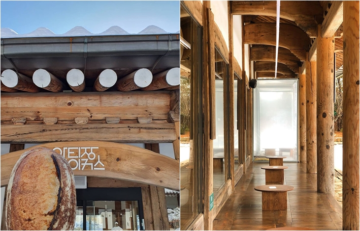 파주 마장 호수 근처에 위치한 한옥 카페 '아티장 베이커스'는 한남동에 아티장 베이커스를 필두로 파주까지 진출한 곳으로 수요 미식회에 크루아상 맛집으로도 소개된 적이 있을 정도로 빵을 좋아하는 분들 사이에서는 유명한 곳입니다. 특히 세로로 길게 생긴 마루에 방석을 깔고 좌식으로 앉아 차를 즐기며 앞마당에 핀 꽃들을 보면 봄이 왔다는 걸 실감하실 수 있을 겁니다.