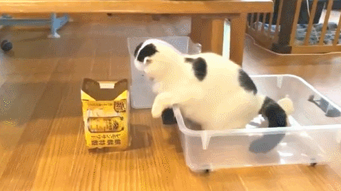이에 실제로 네티즌이 공유한 동영상속에 등장하는 고양이는 바퀴가 달린 투명 케이스 안에서 자신 앞에 놓여 있는 종이 박스에 들어가고 싶었는지 점프를 하는 모습이 담겨 있습니다. 그리고 이내 점프를 하는 순간 바퀴가 달린 케이스가 뒤로 밀리면서 그만 종이 박스에 머리만 낀 대참사가 일어난 장면이 이어지는데요. 대참사를 일으킨 고양이는 이내 민망했는지 한동안 그 자리에 그대로 있었다고 합니다.