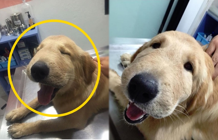 들판에서 나들이를 할 때 제일 조심해야 할게 바로 벌이라고 합니다. 벌은 종류에 따라서 한번 쏘이면 생명까지 위협할 정도로 매우 무서운 곤충이라고 할 수 있습니다. 그런데 각종 SNS 및 인터넷에서는 이러한 벌에 쏘인 사람은 물론이고 동물들의 모습도 흔하게 볼 수 있다고 하는데요. 한 네티즌 역시 벌에 쏘인 골댕이(골든 리트리버)의 사진을 공유하면서 많은 네티즌들 사이에서 화제가 되고 있다고 합니다.