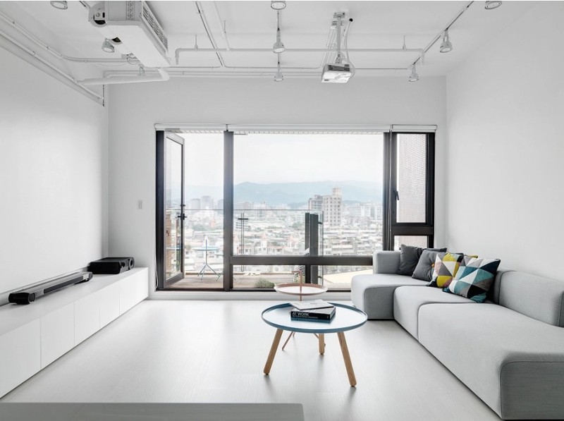 대만에 위치한 화이트 컬러톤의 미니멀리스트 디자인 아파트 인테리어입니다. 화이트톤을 기본 바탕으로 약간의 파스텔톤을 가미해 포인트를 준 디자인이 인상적인 이 아파트는 대만의 젊은 부부가 살고 있다고 합니다. 어떻게 보면 단순해 보이는 인테리어라는 생각도 들지만 미니멀리스트 신혼부부를 위한 독창성과 혁신적인 사고가 집안 곳곳에 녹아있어 인상적인 인테리어를 연출하고 있습니다. 특히 집안의 수납장과 선반은 붙박이 스타일이 아니라 가구 등을 재배치하거나 이사를 할 때 쉽게 옮길 수 있습니다. 전체가 화이트톤으로 되어 있어 깔끔함을 주지만 단조로울 수 있는 인테리어를 커버하기 위해 식탁 의자 등 일부 가구 등은 우드톤의 목재를 사용했다고 합니다.