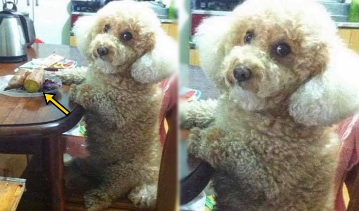 강아지가 이토록 애처롭게 주인을 바라보고 있는건 다름 아닌 식탁 위에 있던 고구마 때문이었다고 합니다. <식탐 대마왕>이라고 불리는 이 강아지는 평소에도 주인이 음식을 먹을 때면 자기도 달라며 애교를 부렸다고 합니다.