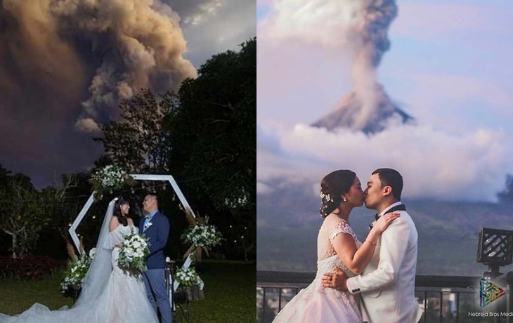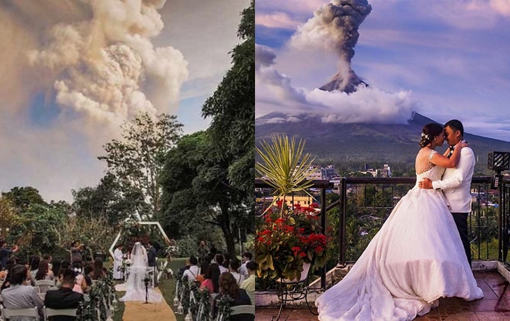 그런데 이런 긴급한 상황에서도 한쌍의 커플이 결혼식을 치르며 화제가 되었습니다. 필리핀의 '치노 바플로 (Chino Vaflor)', '캣 팔로마(Kat Bautista Palomar)' 커플은 화산이 폭발하던 탈 화산에서 10km 떨어진 한 야외 결혼식장에서 결혼식을 올리고 있었다고 합니다. 하지만 결혼식이 진행되던 순간 화산이 폭발하게 되었고 결혼식장에는 화산 폭발로 인한 재와 증기가 날아들면서 아수라장이 되었다고 하죠.