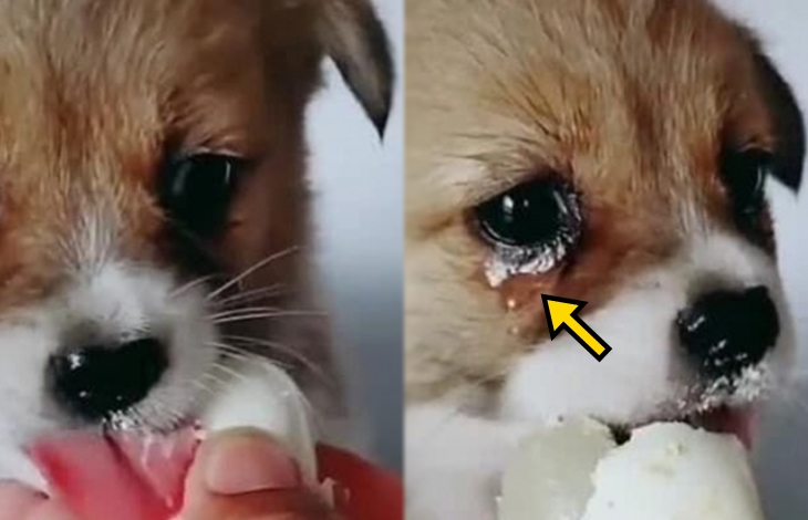 그리고 이어 배고파하는 강아지를 위해 삶은 달걀 하나를 주었다고 합니다. 그런데 삶은 달걀을 먹으면서 새끼 강아지는 눈물을 흘리기 시작했다고 합니다. 배고파 허겁지겁 삶은 달걀을 먹는 순간에도 새끼 강아지는 눈물을 계속 흘렸다고 합니다.