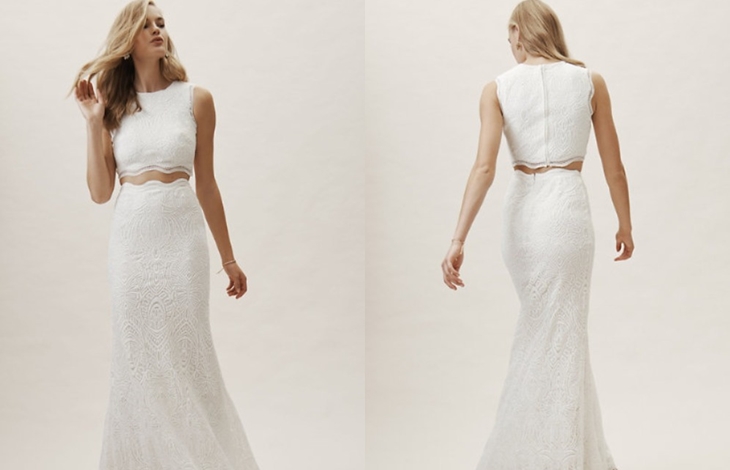 굳이 결혼식이 아니더라도 합리적인 가격으로 이벤트 및 셀프 웨딩 촬영을 알아보고 있는 커플들 사이에서 합리적인 가격에 이쁜 웨딩드레스를 대여할 수 있다고 알려진 브랜드가 바로 'BHLDN(비홀든)'입니다. 미국에서 조차도 가성비가 뛰어난 제품으로 알려진 이 브랜드에서 인기를 얻고 있는 'Campbell Dress + Top'은 탑과 스커트 절개 부분을 스캘럽 트 라인으로 만들어 독특함은 물론이고 개성 있는 웨딩 의상을 알아보고 있는 젊은 층에서 인기 있는 라인이라고 합니다.
