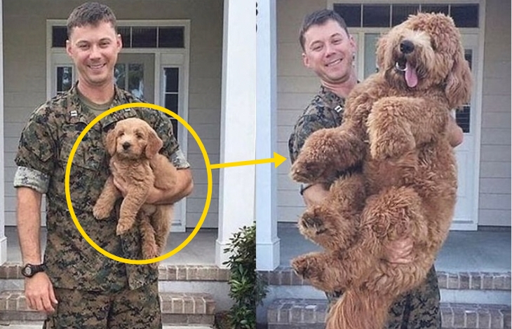 해외 커뮤니티 사이트를 통해 알려진 이 사진은 <댕댕이의 폭풍성장>이라는 제목으로 국내에서도 화제가 되었던 사진으로 댕댕이 시절 한 손으로도 들 수 있었던 강아지가 성장하면서 양손을 써도 들기 무거울 정도로 성장한 모습을 보여주면서 화제가 되었다고 합니다.