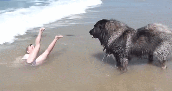 그런데 그 순간 갑자기 소녀에게 큰 파도가 덮쳤다고 합니다. 이에 소녀는 파도에 휩싸였고 이를 본 큰 강아지는 소녀에게 위험이 생겼다는 걸 감지라도 했는지 소녀에게 재빨리 다가간 후 놀라운 행동을 하기 시작했다고 합니다.