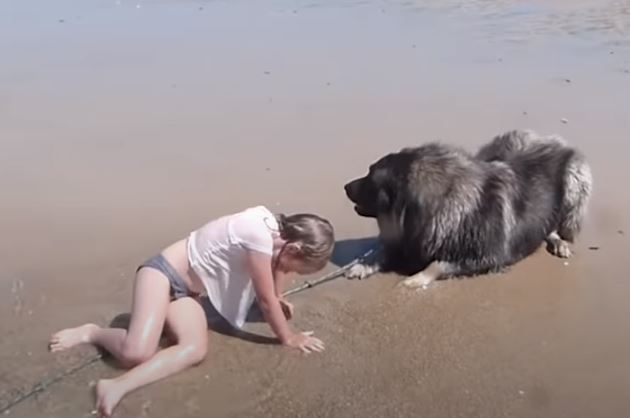 해외 커뮤니티 사이트를 중심으로 화제가 되고 있는 동영상속에 등장하는 소녀와 큰 강아지는 어느 날 부모님을 따라 바닷가로 놀러 갔다고 합니다. 큰 강아지와 소녀는 바닷가에서 신나게 놀고 있었죠. 바닷가에서 신나게 놀고 있던 소녀는 그만 한순간 뒤로 벌러덩 넘어졌습니다.