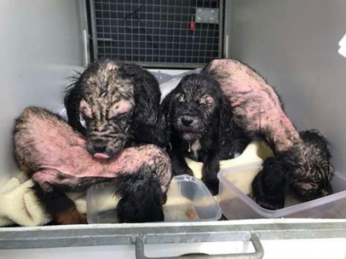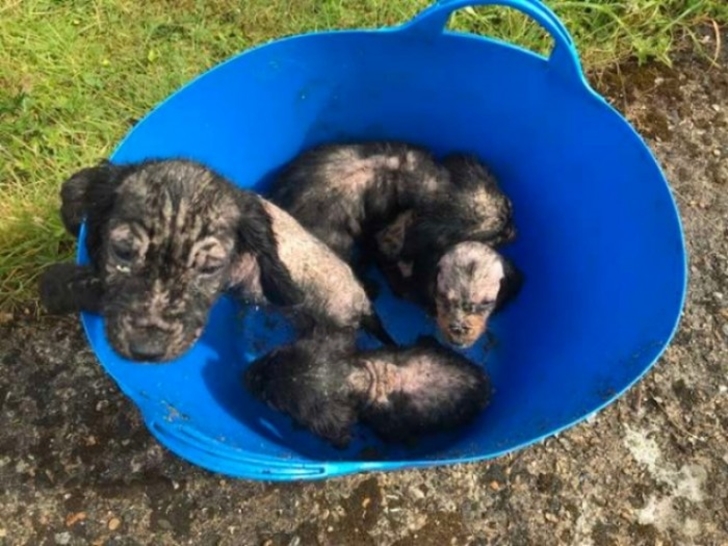 이에 네티즌은 곧바로 경찰에 신고를 했다고 합니다. 신고를 받고 출동한 'RSPCA(왕립동물보호협회)'의 조사관 팀버레이크씨는 꼬물이들을 확인한 후 심각한 피부병으로 인해 털 하나 없이 맨 살을 드러낸 강아지들을 즉각 동물병원으로 옮겼다고 합니다.