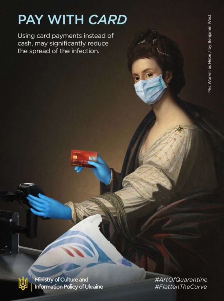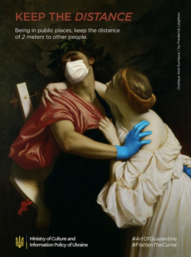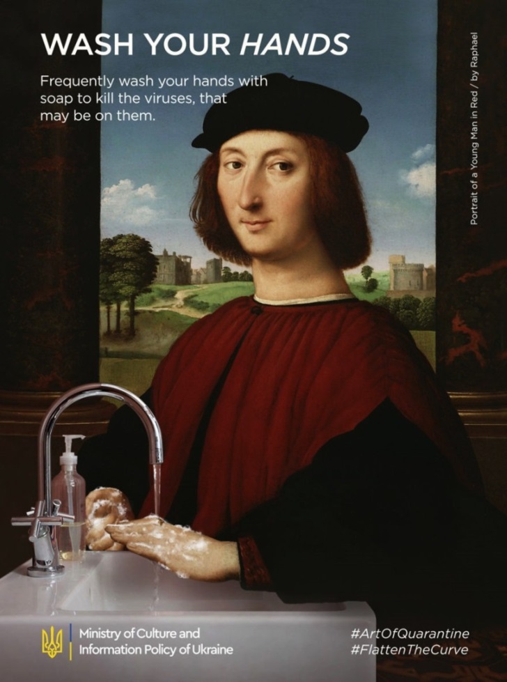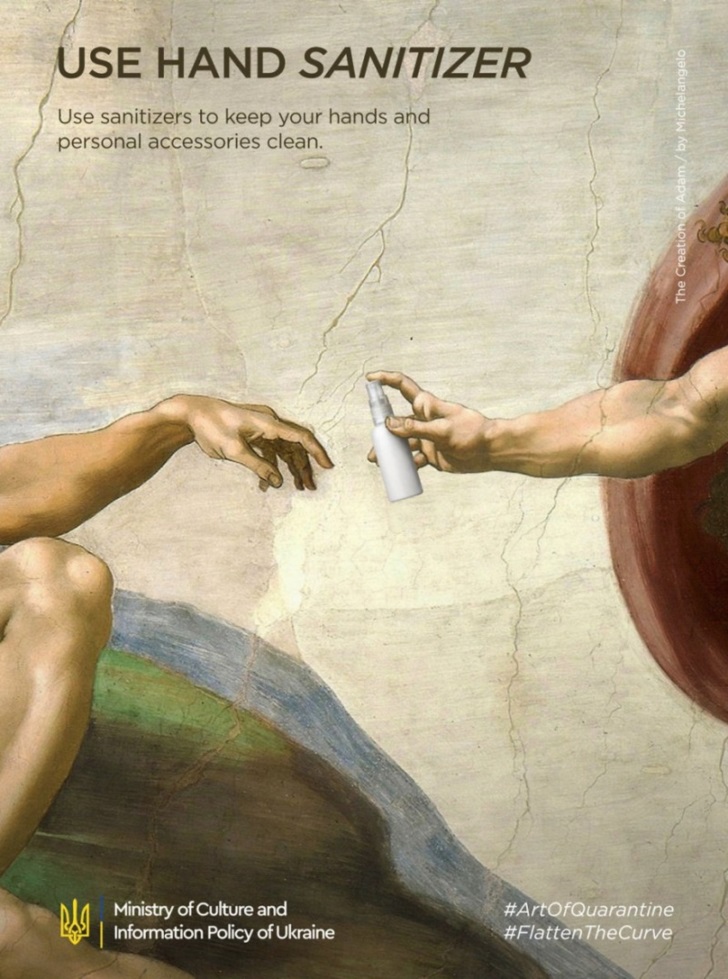 그런 의미에서 볼때 우크라이나의 광고 회사인 '루마(Looma)'의 코로나 예방 포스터를 주목해볼 가치가 있습니다. 루마는 코로나 19의 효과적인 예방을 위해 많은 사람들이 잘 아는 명화들을 패러디하면서 사람들로 하여금 코로나 19 예방의 필요성을 느끼게 하고 싶었다고 하는데요. 포스터들을 잘 보면 포스터의 일부 소품 등 가장 최소한으로 수정을 했을 뿐 전체적인 구도와 인물의 포즈 등은 그대로 유지를 하면서 기존 명화의 틀을 크게 벗어나지 않도록 제작을 했습니다.