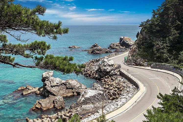 동해안 해안도로를 생각할 때 가장 먼저 떠오르는 해안도로는 '헌화로'입니다. 헌화로는 금진항-심곡항-정동진항까지 이어지는 해안도로로 이곳을 달리다 보면 평화로운 백사장과 푸른 바다들을 가까이 볼 수 있습니다. 헌화로는 우리나라 해안도로 중 바다와 가장 가까운 도로로 파도가 많이 치는 날에는 바닷물이 도로까지 밀려와 장관을 이루기도 합니다.