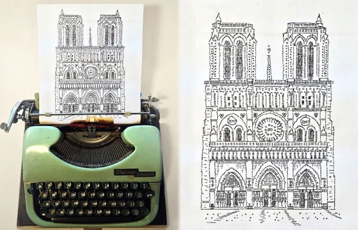 인물부터 시작해 동물, 풍경 그리고 건축물까지 하나하나 표현해낸 작품들을 얼핏 보면 그림같이 보이지만, 그림을 자세히 살펴보면 다양한 문자들을 발견할 수 있어 더운 신비롭게 느껴진다고 하는데요. 엄밀히 이야기를 하면 타자기의 문자를 이용해 그린 그의 그림 과연 어느 정도로 세밀하게 표현을 했는지 그의 작품들을 함께 감상해 보도록 하겠습니다.
