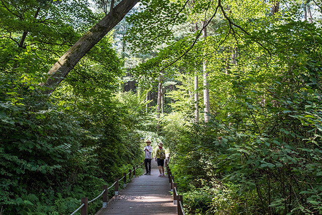 1920년대 씨앗을 산에 뿌려 조상한 금강소나무 숲이 장관을 이루는 국립 대관령 치유의 숲은 성격과 난이도가 다른 8개의 숲길을 운영하고 있습니다. 시원하게 뻗은 소나무 사이를 산책하고, 울창한 숲이 내주는 그늘에서 쉬는 것만으로 건강해지는 느낌을 받을 수 있는 곳입니다.