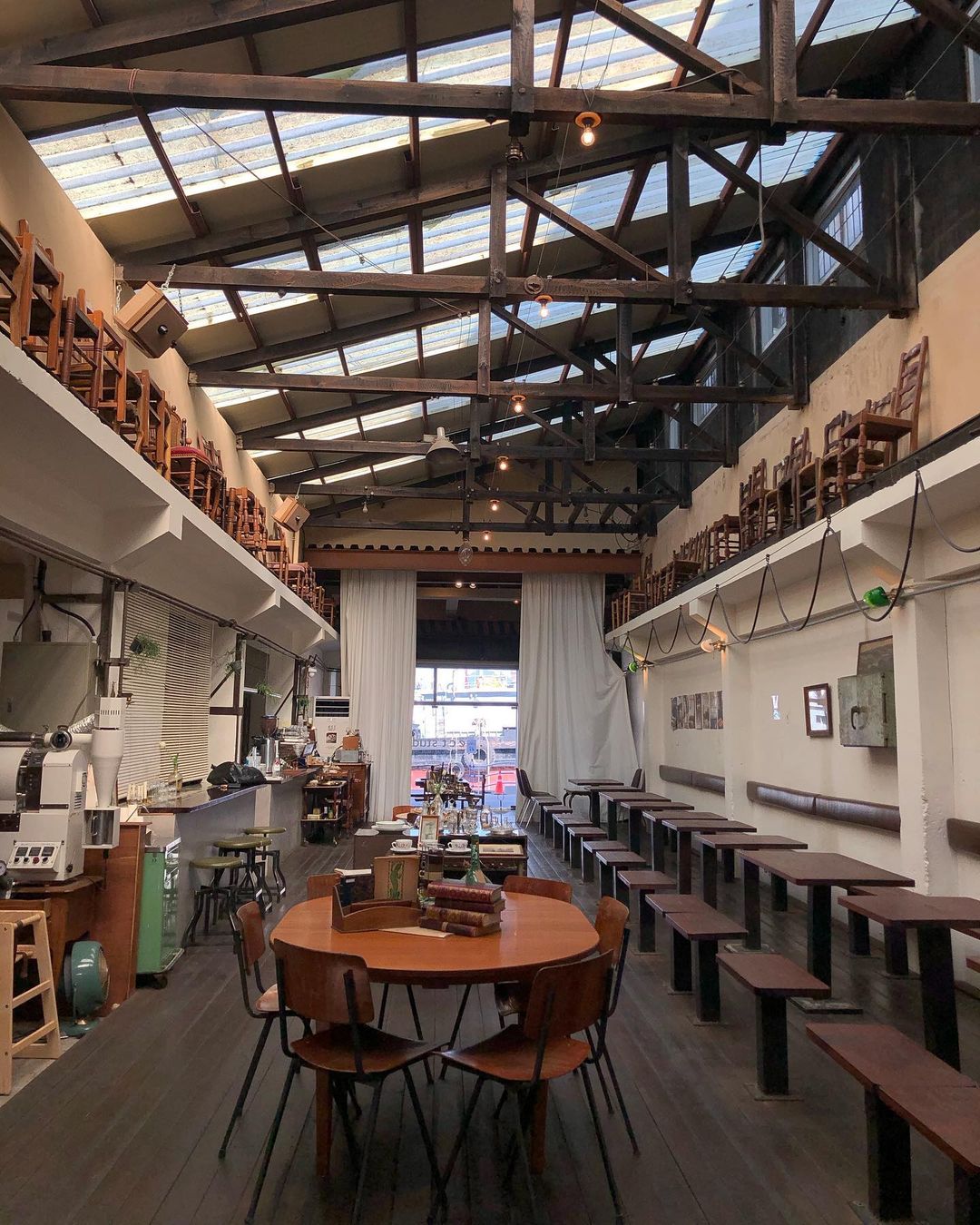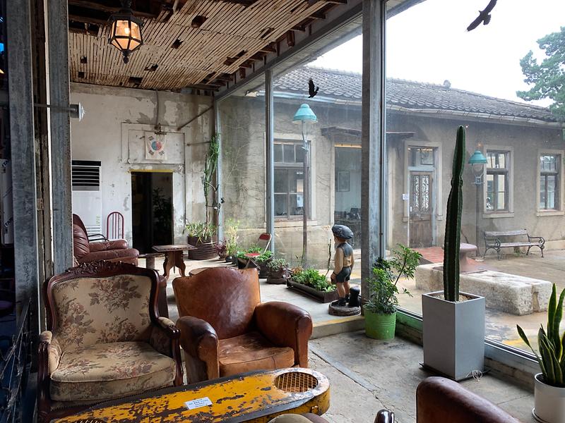 조양 방직은 원래 강화 섬유산업을 이끌던 방직공장으로 1990년대에 문을 닫고 오랫동안 방치된 건물을 수리해 카페로 만든 곳입니다. 보수공사를 했지만 외부의 회색빛 시멘트 건물 외관은 그대로 살렸고, 방직기계가 있던 기다란 작업대는 자연스럽게 앉아서 커피를 마시는 테이블로 활용하면서 건물 내외부 모두 옛 공장의 느낌을 그대로 살려 레트로 감성의 인더스트리얼 카페로 SNS에서 인기를 얻고 있는 장소입니다.