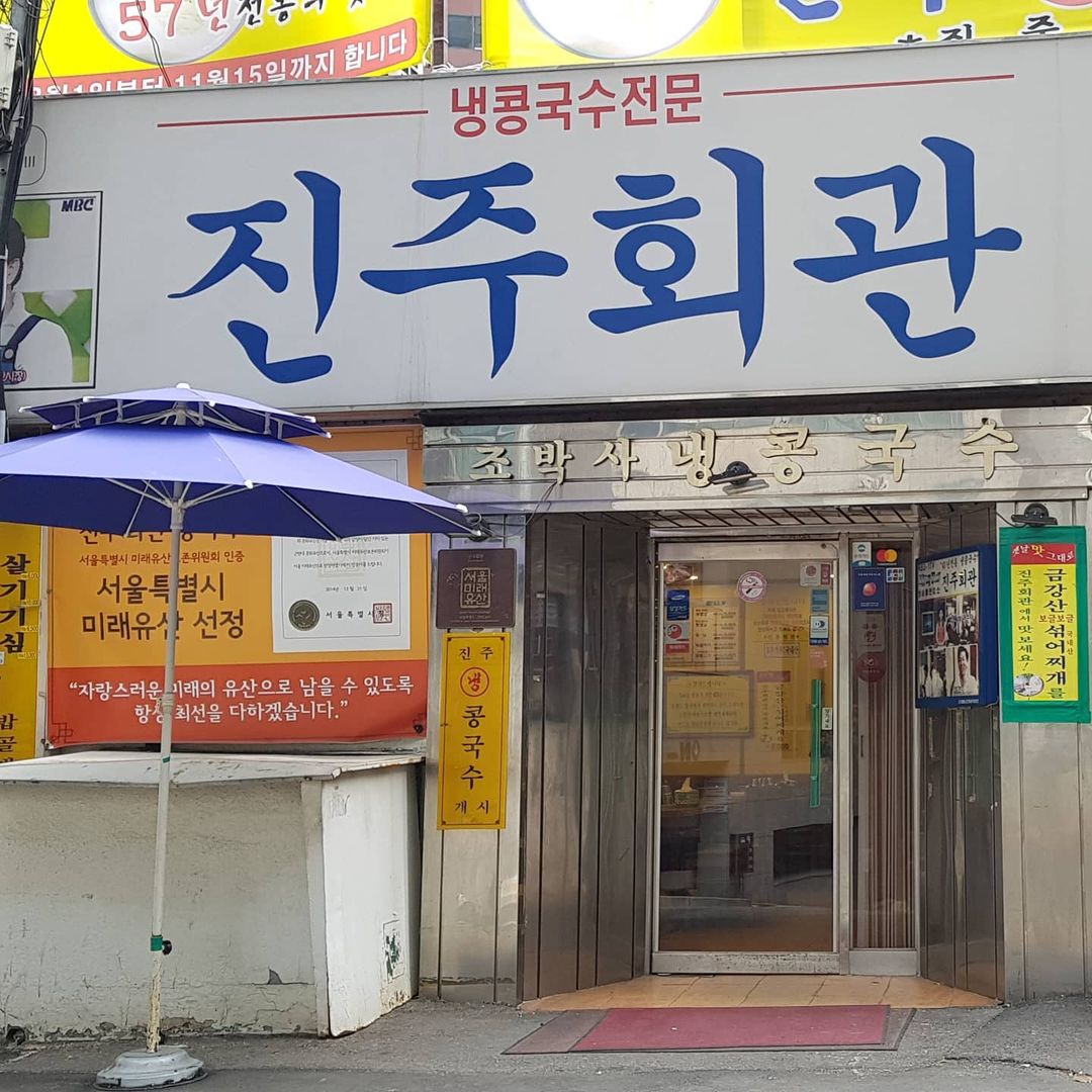 1962년 진주에서 오픈해 1965년 서울로 올라와 영업을 하고 있는 진주회관은 오랜 역사와 전통만큼이나 수많은 단골을 보유한 전통 깊은 콩국수집이라고 할 수 있습니다. 미식사로 소문난 삼성의 이건희 회장도 여름철이면 진주회관을 찾을 정도죠. 강원도에서 재배한 콩을 사용해 걸쭉한 국물과 콩가루를 섞어 만든 굵고 차진 면발은 단순하지만 콩국수의 깊은 맛만큼은 일품인 곳입니다.