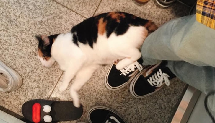사진을 공유한 네티즌은 고양이 홀로 집에 두고 외출을 하려는 순간 고양이가 현관에까지 나와 네티즌의 외출을 막기 위해 바닥에 드러누웠다며 사연을 전했습니다.