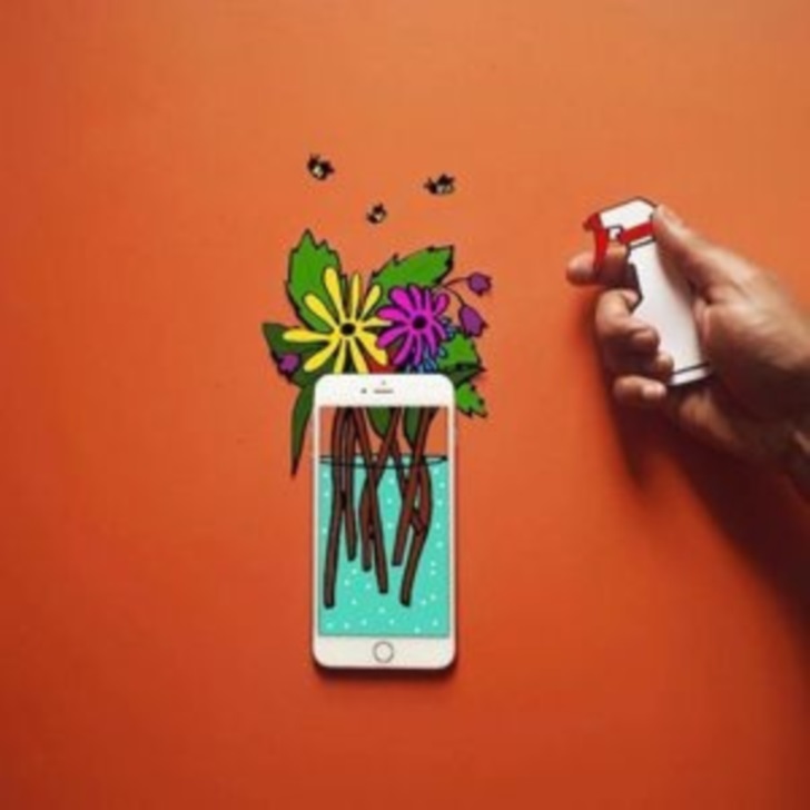고쉬의 작품 특징은 현실과 스마트폰으로 대표되는 디스플레이 속 세상이 마치 상호작용하는 듯한 독특한 장면을 통해 스마트폰에 중독된 세대를 풍자를 하고 있죠. 그는 뉴델리에 'Moography'를 설립해 다양한 예술 활동 등을 하고 있으며, 삼성, 디올 등 유명한 기업들과 협업을 하면서 능력을 인정받고 있습니다. 스마트폰과 현실의 경계를 모호하게 만들고 있다는 평가를 받고 있는 그의 작품들 과연 어떤 모습들인지 함께 보도록 하겠습니다.