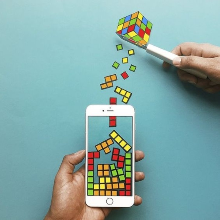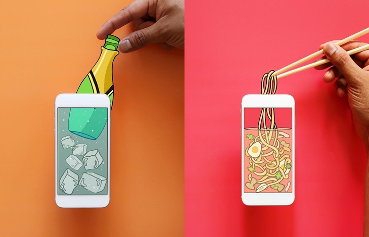 남아프리카 공화국에서 활동하고 있는 비주얼 아티스트 '안슈만 고쉬(Anshuman Ghosh)'가 바로 그 주인공입니다. 고쉬는 최근 디지털기기들을 활용해 예술적 활동에 접목하고 있는 '테카르트(Techart)'를 표방하고 있는 아티스트로 '기술(Tech)'과 '예술(Art)'의 만남을 통해 독창적인 작품 활동을 하고 있습니다. 고쉬는 스마트폰의 네모난 디자인에서 아이디어를 얻어 우리 주변에서 흔히 볼 수 있는 다양한 네모난 사물을 이용해 친축하면서도 때로는 진짜 폰으로 무언인가 하고 있다는 착각이 들 정도로 마술사 같은 작품들을 만들어 내고 있습니다.