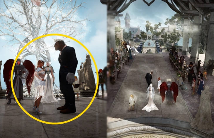 결혼식은 검은 사막GM(운영진)이 '샤이 작곡 시스템'을 활용해 결혼식 행진곡을 연주하였고 함께 게임을 즐기던 길드원들이 축하 도열을 만들어 진풍경을 연출하였습니다. 길드원들의 축하 속에 결혼식을 올린 커플은 운영진이 특별히 만들어준 장소에서 피로연까지 올렸는데요. 길드원과 검은 사막 운영진의 도움으로 체코 커플은 자신들을 연결해준 게임 속에서 이색적인 결혼식을 올리게 되었습니다.
