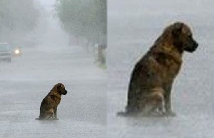 유기견은 자신의 몸이 비에 흠뻑 젖는다는 사실도 모른 채 그렇게 한참을 허리를 곧게 세운 채로 지나가는 사람들만 바라보며 누군가 기다리는듯한 모습을 보였다고 하는데요. 지나가는 사람들도 처음에는 조금 있으면 자리를 떠나겠지라는 생각들을 했습니다. 하지만 시간이 지나 비바람이 더욱 게게 몰아치는 순간에도 유기견은 그 자리를 지켰죠.