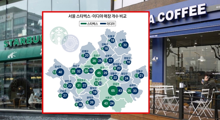 또한 이디야는 스타벅스가 입점한 곳의 임대료를 가맹점주가 감당하기 어렵다며 일부 지역의 경우 스타벅스보다 이디야의 매장 숫자가 더 많다는걸 강조했습니다. 스타벅스의 경우 직영점으로 운영되는 상황에서 철저한 조사를 통해 매장의 위치를 선정하면서 높은 임대료에도 불구하고 일명 몫 좋은 자리에 종종 스타벅스 매장을 입점하면서 건물주들에게 스타벅스는 환영받는 대상이 되고 있죠. 하지만 이런 몫 좋은 곳의 경우 임대료가 수천만 원에 달 하는 곳도 있어 이디야의 개인 가맹점주들이 부담할 수가 없다는 이야기를 하고 있습니다.