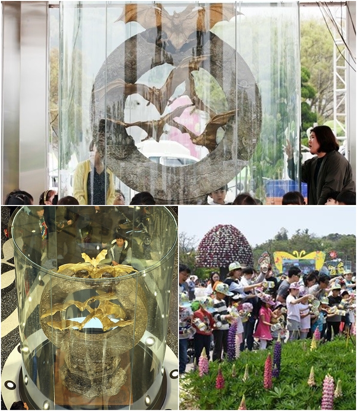 2018년 제20회 함평 나비축제는 11일간의 행사를 통해 입장객 수 27여만 명을 달성했고, 군민이 참여한 농특산물 및 각종 판매장을 통해 판매액 10억 4,000만 원이라는 매출을 올려 지난 13회 축제부터 7년 연속 10억 원 돌파라는 기록을 달성했죠. 특히 2019년 함평 나비축제에는 황금박쥐 동상이 엑스포공원 중앙광장에 등장해 관람객들의 발길을 멈추게 하였습니다.