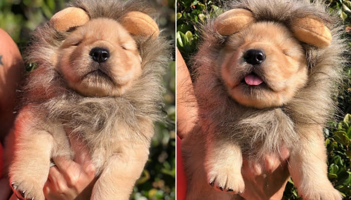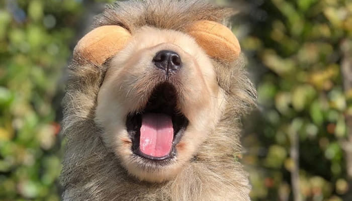 사자 털을 쓰고 있는 골든 리트리버는 때로는 근엄한 표정을 짓기도 하면서 졸린지 하품을 하고 있습니다. 이에 많은 네티즌들은 처음에는 정말 사자인 줄 알았다며 골든 리트리버는 사실을 눈치채고는 귀엽고 정말 멀리서 보면 사자라고 오해할 정도로 싱크로율이 대박이라는 반응들을 보이고 있습니다.