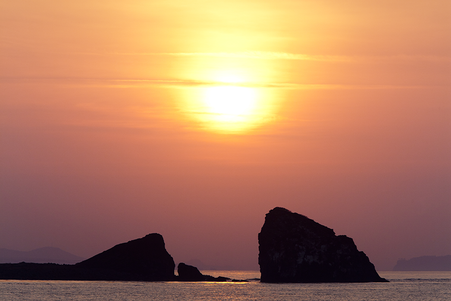 왜목마을의 일출은 동해안의 일출과는 조금 다르죠. 동해안의 일출을 장엄하면서도 화려하다고 표현을 하면 왜목마을의 일출은 소박하면서도 서정적이라고 표현을 할 수 있습니다. 왜목마을 해변에서 바다를 보았을 때 멀리 보이는 국화도는 일출 시 자연의 신비와 오묘함을 그대로 담고 있어 일출 명승지로 손꼽히고 있습니다.