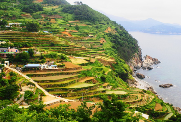 남해 서쪽 최남단에 위치한 잘 보존 된 작은 마을인 다랭이 마을은 드넓은 바다에 가파른 산 경사면을 깎아 수많은 작은 논을 만들어 이국적인 모습을 연출하고 있는 곳입니다.