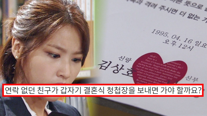 결혼식장에 몇 명의 친구가 오냐에 따라서 평소 사회생활을 어떻게 했는지 가름하는 척도가 된다고 하죠. 그렇다 보니 가급적 결혼식에는 많은 하객들이 오기를 바라는 건 예비신부와 예비신랑 모두가 같은 마음일 겁니다. 그런데 만약 10년 동안 연락이 없던 친구가 결혼을 한다고 청첩장을 보낸다면 과연 어떻게 해야할까요?