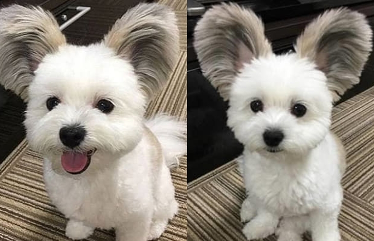일본의 한 네티즌이 키우고 있는 이 강아지는 파피용의 특징인 큰 퀴와 말티즈의 하얀 털을 그대로 물려받아 겉으로 볼 때에는 말티즈 같지만 토끼처럼 큰 귀로 인해 네티즌들의 사랑을 한 몸에 받고 있습니다.