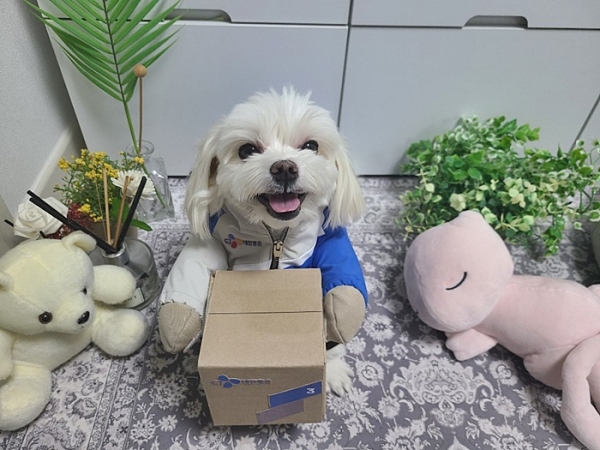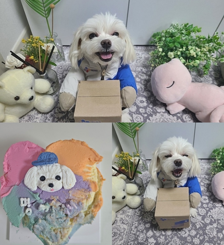 이러한 사연이 알려지면서 당시 네티즌들은 택배 기사님을 옹호하기 시작했고 응원을 하였습니다. 그리고 얼마전 뜻깊은 근황이 알려졌죠. '경태 아부지'라고 소개한 택배 기사님은 강아지용 케이크와 함께 회사 로고가 새겨진 유니폼을 입고 있는 경태의 모습을 공개했습니다. 혼자 보기에는 너무 귀엽고 재미있어서 감사한 분들께 경태의 근황을 알려드리기 위해 공유했다는 사진 속에 경태는 너무나도 해맑아 보였습니다.