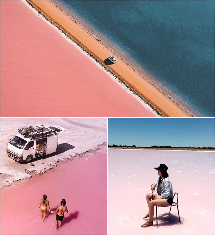 이런 자연의 신비로움으로 인해 맥도넬 호수를 방문한 여행객들 사이에서는 일명 '워터멜론 거리'로도 불리고 있습니다. 맥도넬 호수가 이렇게 극단적인 색을 보이는 이유로 소금 광산과 관련이 있는 것으로 알려져 있죠. 호수의 바닥에 있는 핑크색 소금 광물 혹은 플랑크톤의 영향으로 호수가 핑크색으로 변하고 있는 거라고 하는데요. 여기에 계절에 따른 강수량과 온도에 따라 또 다른 색상의 차이를 보이고 있다고 합니다.