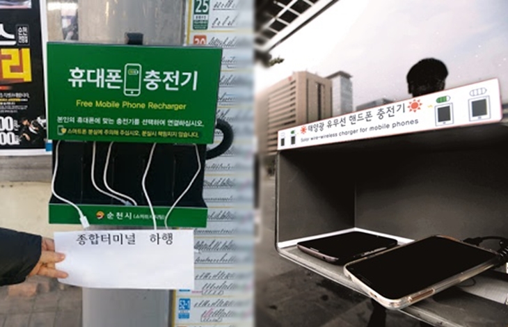 버스정류장에서 충전도 가능하다.