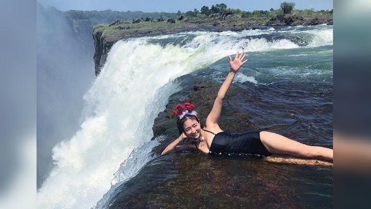 세계에서 가장 위험한 '악마의 수영장'이라고 불리는 빅토리아 폭포는 아프리카 짐바브웨와 산 비아 공화국의 국경에 있는 천연 수영장으로 유네스코 세계 유산에 등재된 높이 108m, 폭 1.7km에 달하는 거대한 폭포죠. 이곳은 배우 진재영이 자신의 SNS 계정을 통해 빅토리아 폭포 방문 당시 절벽 끝에서 놀라운 기념사진을 남겨 화제가 되었는데요.