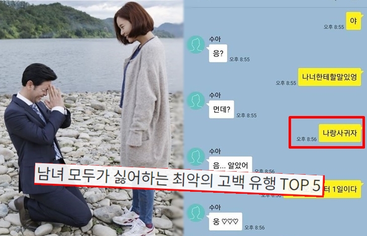 하지만 고백도 때와 장소가 있고 경우에 따라서는 조심해야 하는데요. 결혼정보회사 듀오에서는 미혼남녀 383명을 대상으로 '고백'관련 설문조사를 하면서 남녀 모두가 싫어하는 최악의 고백 유형을 정리해 발표하였습니다. 그렇다면 과연 남녀 모두가 뽑은 가장 받기 싫은 고백 유형에는 어떤 것들이 있을까요?