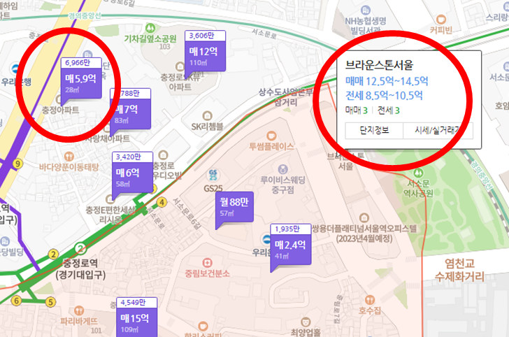 충정아파트 인근에 위치한 브라운스톤서울 주상복합 아파트의 경우 84제곱미터(공급/전용 기준:31평. 27평/25.67평)가 평당 3,997만 원으로 12억 5,000만 원에 거래가 되고 있습니다. 이런 시세를 고려했을 때 서울 중심가라는 점과 강남, 서울역, 종로 등 교통의 요지라는 점을 감안했을 때 주상복합 아파트로 이주할 경우 얻을 차익은 상당할 것으로 예상이 되는데요. 이런 이유로 인해 충정아파트에 대한 투자자들의 관심은 당분간 높을 것으로 예상되고 있습니다.