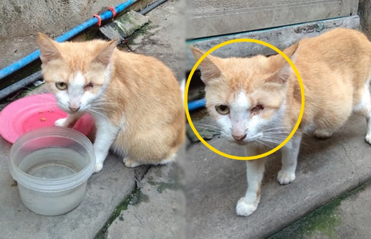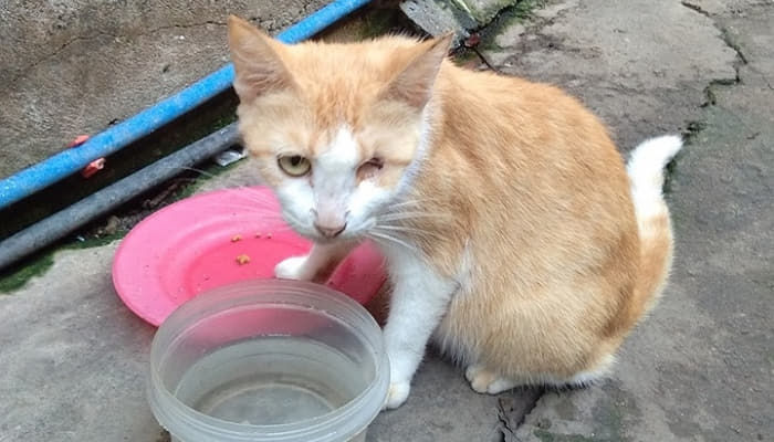 그제야 네티즌은 자신을 따라온 길냥이의 한쪽 눈이 없다는 사실을 알았습니다. 길거리에서 생활하면서 무슨 일을 겪었는지 알 수는 없지만 자신을 따라온 길냥이가 무슨 이유가 있을 거라고 생각한 네티즌은 외면할 수 없다는 생각에 먹을 것과 함께 물을 챙겨주었습니다.