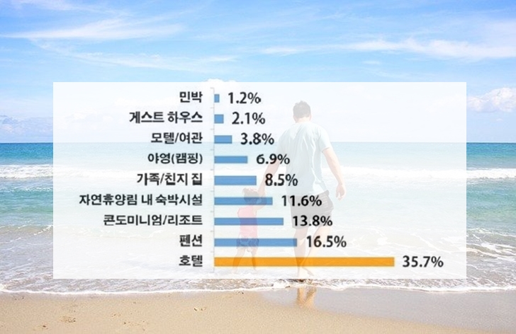 경기 연구원은 <코로나 19 이후 국민여행 실태 및 인식조사>를 통해 달라진 여행 풍속을 알아봤습니다. 이번 설문조사를 통해 많은 국민들은 코로나 19 이후 선호하는 숙박 형태로 '호텔(35.7%)'을 압도적으로 선택했는데요. 그 이유에 대해서는 '코로나로 인해 청소 및 청결' 부분을 고려했다고 밝혔습니다. 호텔에 이어서는 '펜션(16.5%)', '콘도 및 리조트(13.8)', '자연휴양림(11.6%)'의 순으로 선호하는 숙박시설이 집계되었습니다.