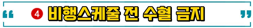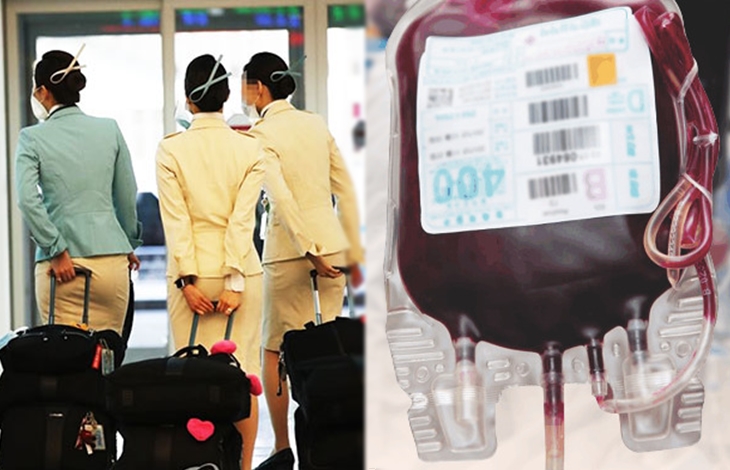 승무원 및 기장들의 경우 비행 스케줄 72시간 이내에는 수혈을 하지 못하도록 규정하고 있습니다. 만약 가족 및 긴급한 상황에서 수혈을 하게 될 경우에는 수혈 후 72시간이 지나야지만 비행이 가능하다고 하는데요. 또 비행 24시간 즉 하루 전에는 스쿠버 다이빙과 같은 레저 스포츠도 금지되어 있습니다. 이러한 조치는 기압과 관련되어 건강상의 문제를 일으킬 수 있기 때문이라고 하죠