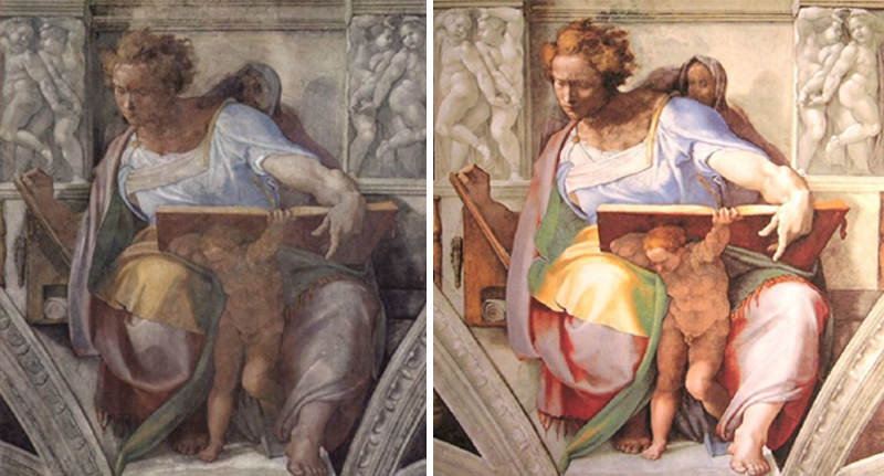 하지만 천문학적인 비용 및 기술 부족 등의 이유로 보수 작업은 난관에 부딪히게 되었죠. 1982년 일본의 NHK는 천지창조 및 시스티나 성당의 복원 및 보수를 위해 무려 900억 원에 달하는 비용을 부담하면서 그 대가로 시스티나 성당 촬영권을 독점하게 되었습니다. 이때부터 시스티나 성당 내부를 촬영하기 위해서는 촬영 독점권을 갖고 있는 NHK의 사전 승낙이 필요하게 되었습니다. 보수를 위해서는 어쩔 수 없는 선택이었다고는 하지만 아쉬움이 드는 건 어쩔 수 없는 거 같습니다.