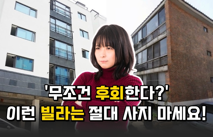 통상 5층 이하로 건축된 빌라는 아파트에 비해 투자가치는 떨어지지만 재건축 및 효율성으로 인해 아파트 못지않게 대체 투자처로 떠오르고 있는 상황인데요. 하지만 이런 빌라도 위치 및 년도에 따라서 절대 사지 말아야 빌라들도 존재하고 있습니다. 그래서 오늘은 사는 순간 무조건 후회한다는 빌라 유형에 대해서 알아보도록 하겠습니다.